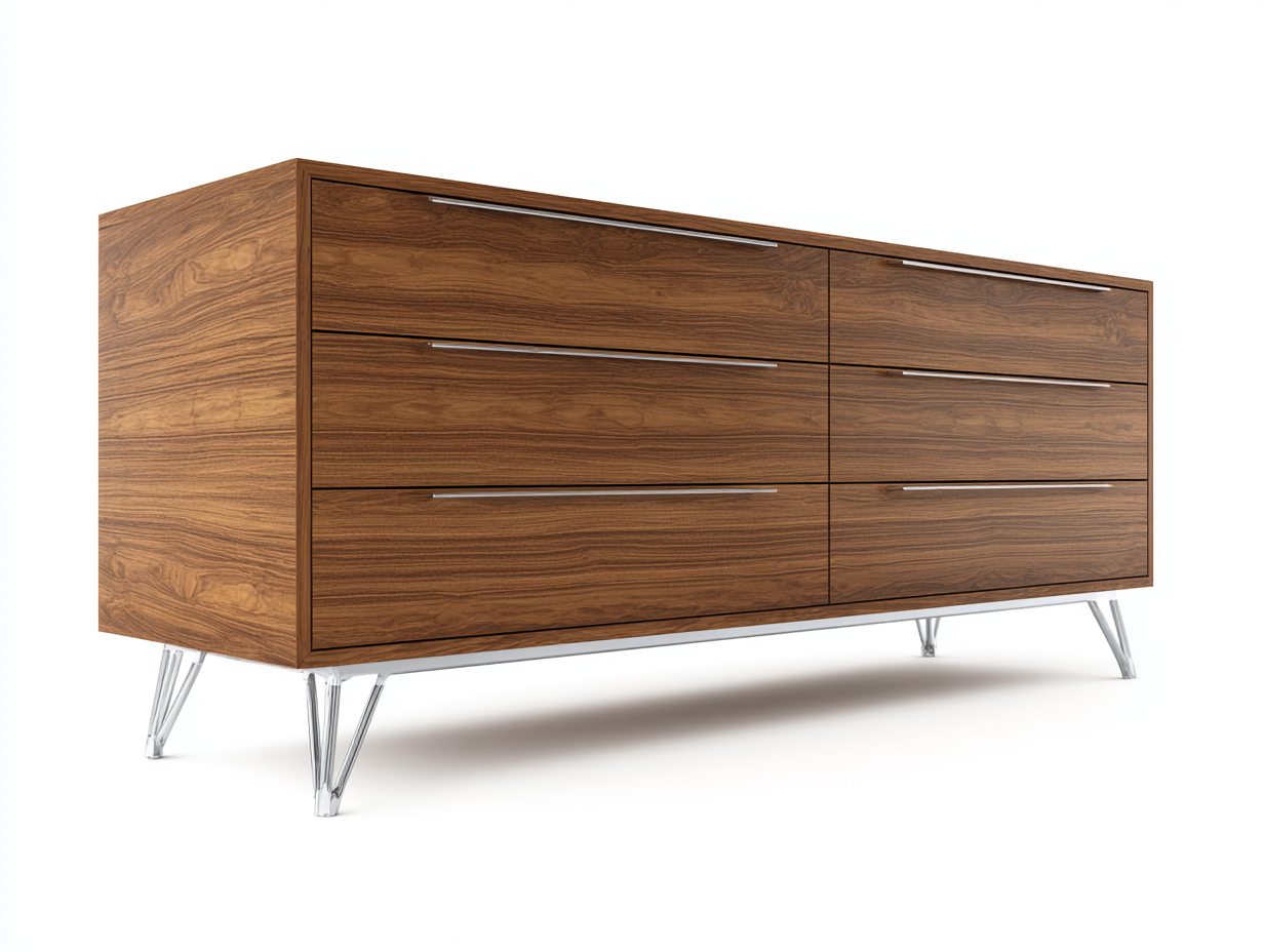 Commode en bois massif 160x45x80 cm - noyer - meuble de rangement pour intérieur