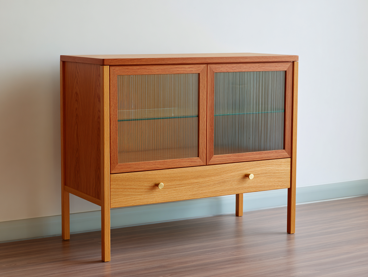 Vitrine en bois massif 90x40x90 cm - bois naturel - rangement avec portes vitrées